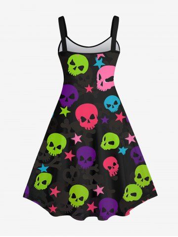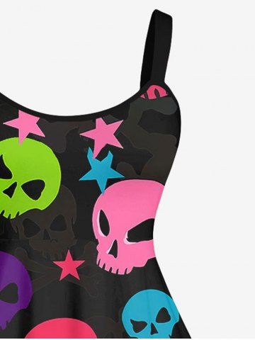 Plus Size Coloful Skull Star Print Tank Dress - Black - 6x
