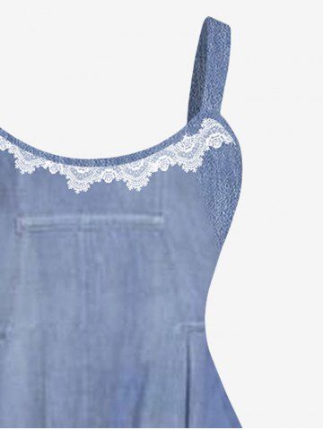 Plus Size Colorblock Appliques Dnim Patchwork 3D Print Tank Dress - Blue Gray - 3x