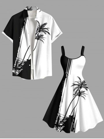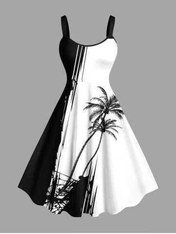 Plus Size Colorblock Coconut Tree Cliff Print Hawaii Tank Dress - White - 6x