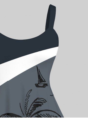 Plus Size Colorblock Coconut Tree Print Hawaii Tank Dress - Black - L