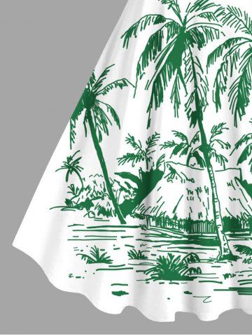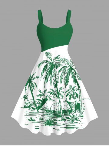 Plus Size Colorblock Coconut Tree Seascape Print Hawaii Tank Dress - Green - Xs