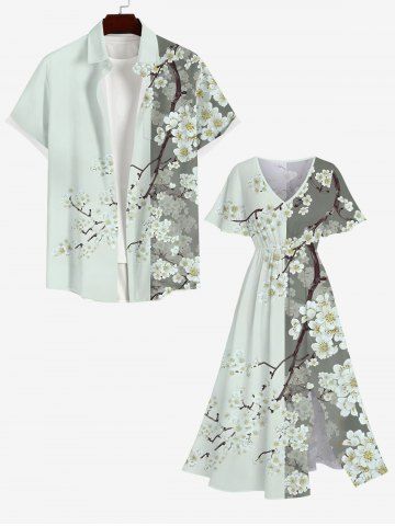 Graphic Dresses > Plus Size Colorblock Peach Blossom Flower Branch Print Split Hawaii Midi Dress