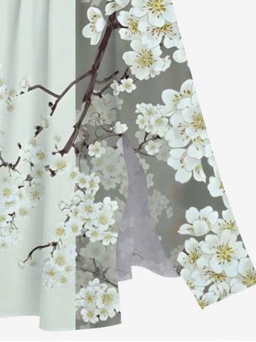 Plus Size Colorblock Peach Blossom Flower Branch Print Split Hawaii Midi Dress - Multi-a - 3x