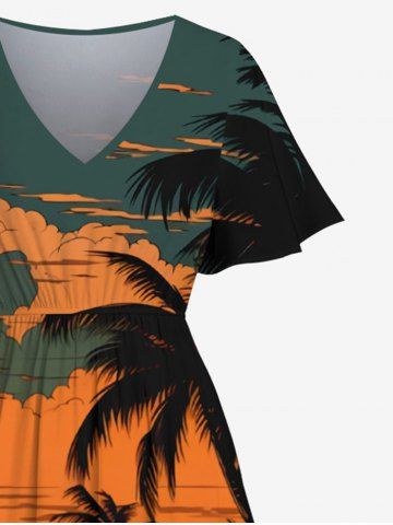 Plus Size Colorful Cloud Coconut Tree Sea Beach Print Hawaii Split Pocket A Line Midi Dress - Multi-a - Xs