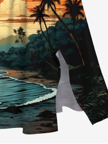 Plus Size Colorful Cloud Coconut Tree Sea Beach Print Hawaii Split Pocket A Line Midi Dress - Multi-a - S