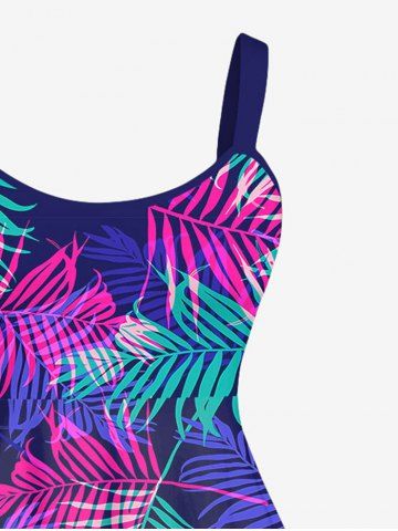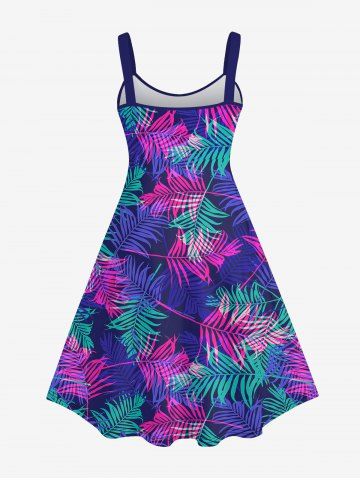 Hawaii Plus Size Colorful Coconut Tree Leaf Print Backless A Line Tank Dress - Blue - 6x
