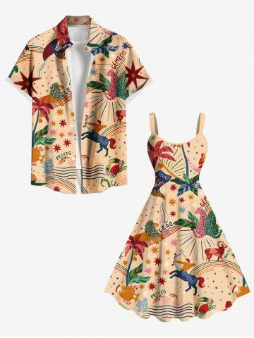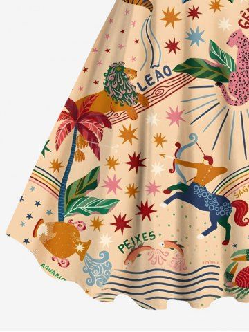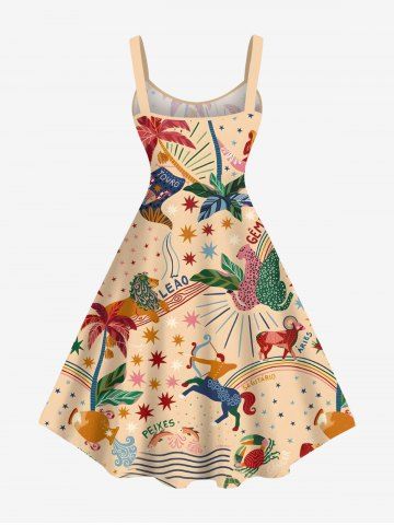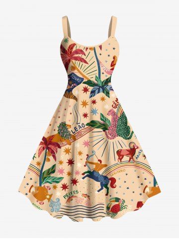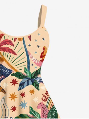 Plus Size Colorful Coconut Tree Leopard Stars River Rainbow Print Hawaii A Line Tank Dress - Light Coffee - Xxs