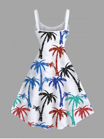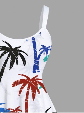 Plus Size Colorful Coconut Tree Print Hawaii A Line Tank Dress - White - 4x