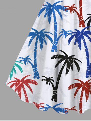 Plus Size Colorful Coconut Tree Print Hawaii A Line Tank Dress - White - 6x