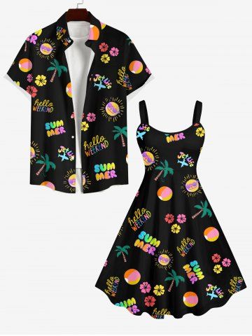 Plus Size Colorful Coconut Tree Sun Letters Floral Print Hawaii Backless A Line Tank Dress - Black - S