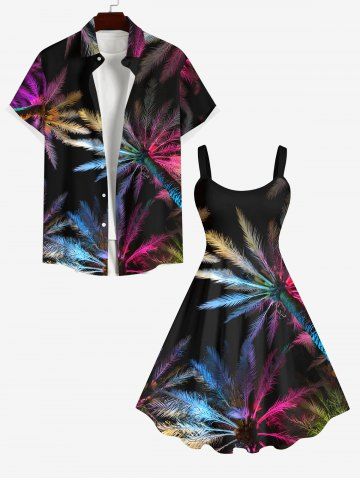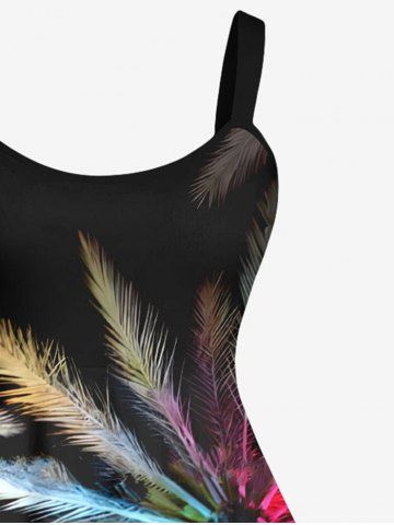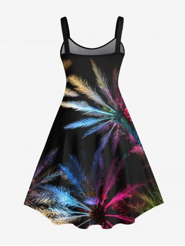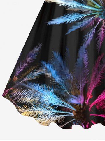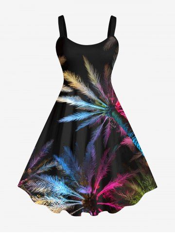 Plus Size Colorful Coconut Tree Tropical Print Hawaii Tank Dress - Black - L