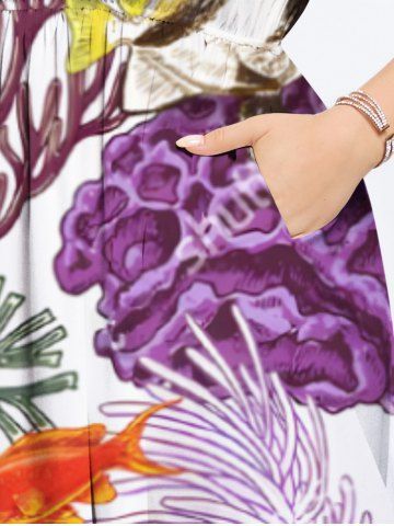 Graphic Dresses > Plus Size Colorful Coral Conch Shell Fish Print Hawaii Split Pocket A Line Midi Dress