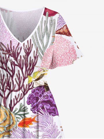 Graphic Dresses > Plus Size Colorful Coral Conch Shell Fish Print Hawaii Split Pocket A Line Midi Dress