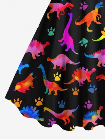 Plus Size Colorful Dinosaur Foot Print Hawaii Tank Dress - Black - 3x