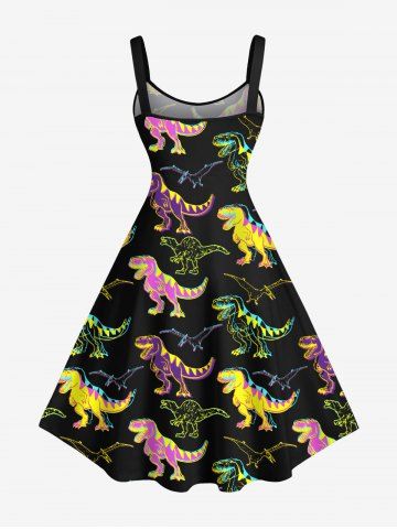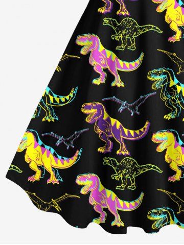 Plus Size Colorful Dinosaur Print Hawaii A Line Tank Dress - Black - 5x