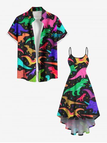 Graphic Dresses > Plus Size Colorful Dinosaur Print Hawaii High Low Asymmetric Cami Dress