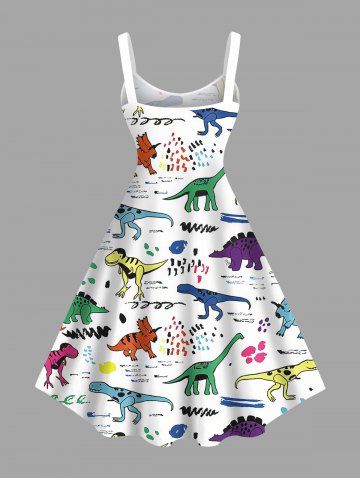 Plus Size Colorful Dinosaur Print Hawaii Tank Dress - White - 2x