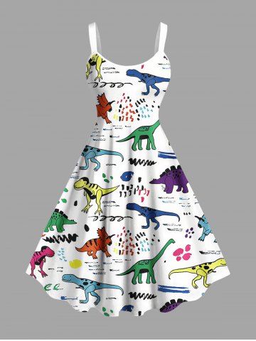 Plus Size Colorful Dinosaur Print Hawaii Tank Dress - White - 3x