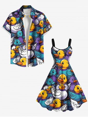 Graphic Dresses > Plus Size Colorful Ducks Print Hawaii Tank Dress