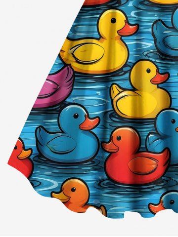 Graphic Dresses > Plus Size Colorful Ducks Print Hawaii Tank Dress