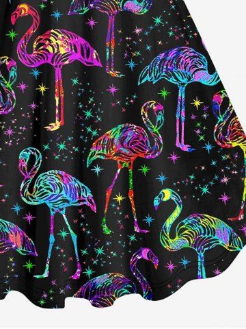 Plus Size Colorful Flamingo Galaxy Glitter 3D Print Hawaii Tank Dress - Black - S