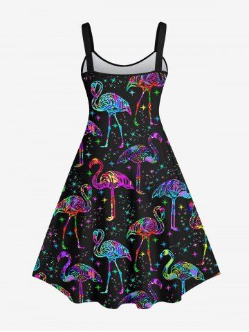 Graphic Dresses > Plus Size Colorful Flamingo Galaxy Glitter 3D Print Hawaii Tank Dress