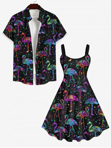 Graphic Dresses > Plus Size Colorful Flamingo Galaxy Glitter 3D Print Hawaii Tank Dress