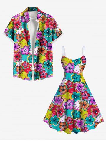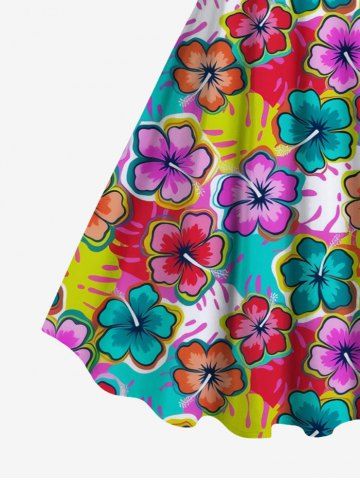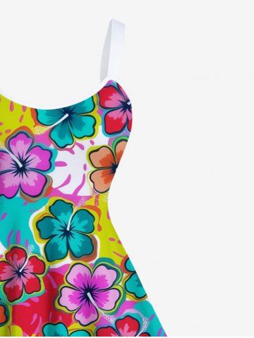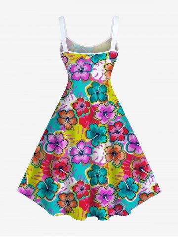 Plus Size Colorful Floral Tropical Leaves Print Hawaii A Line Tank Dress - Multi-f - 6x
