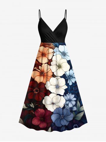 Graphic Dresses > Plus Size Colorful Flowers Print Surplice Hawaii Cami Dress