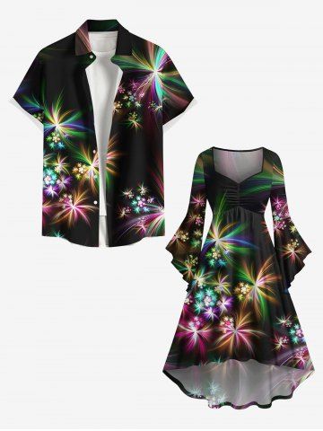 Plus Size Colorful Glitter Fireworks Floral Print Party New Years Eve Ruched High Low Asymmetric Dress - Black - 2x