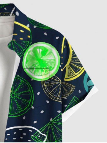 Plus Size Colorful Lemon Orange Print Hawaii Button Pocket Shirt For Men - Black - S