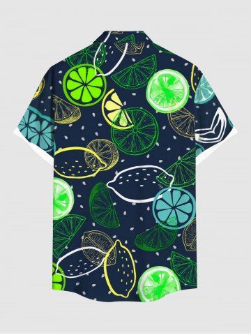 Plus Size Colorful Lemon Orange Print Hawaii Button Pocket Shirt For Men - Black - 2xl