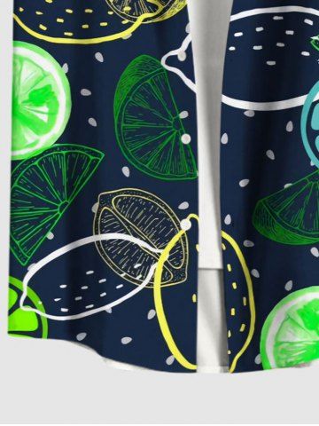 Plus Size Colorful Lemon Orange Print Hawaii Button Pocket Shirt For Men - Black - 4xl