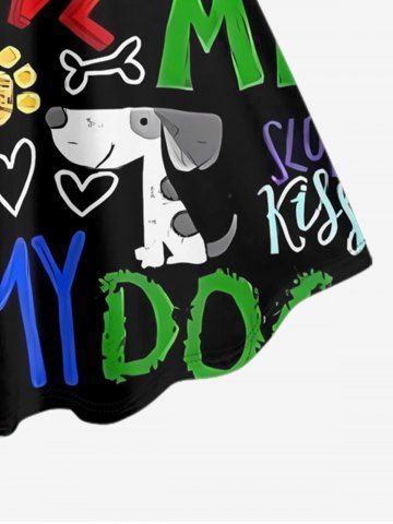 Plus Size Colorful Letters Dog Heart Paw Print Hawaii A Line Dress - Black - 5x