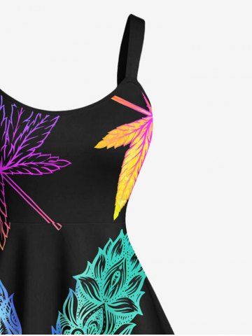 Plus Size Colorful Maple Floral Pattern Print Hawaii Tank Dress - Black - S