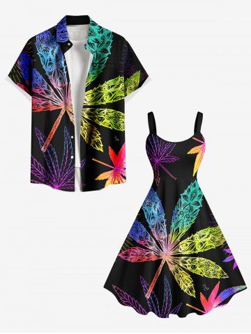 Graphic Dresses > Plus Size Colorful Maple Floral Pattern Print Hawaii Tank Dress