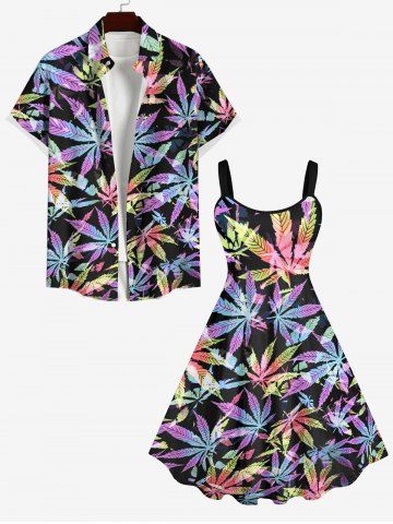 Plus Size Colorful Maple Leaf Print Hawaii Tank Dress - Black - S