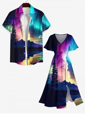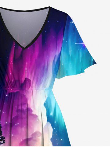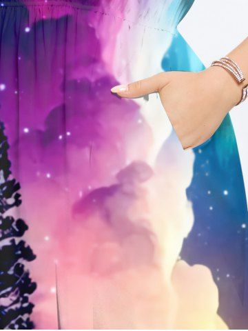 Plus Size Colorful Ombre Aurora Cloud Galaxy Tree Mountain Lake Print Hawaii Split Pocket A Line Midi Dress - Multi-a - 6x
