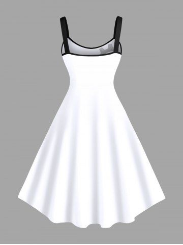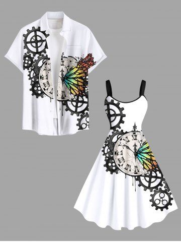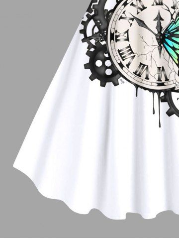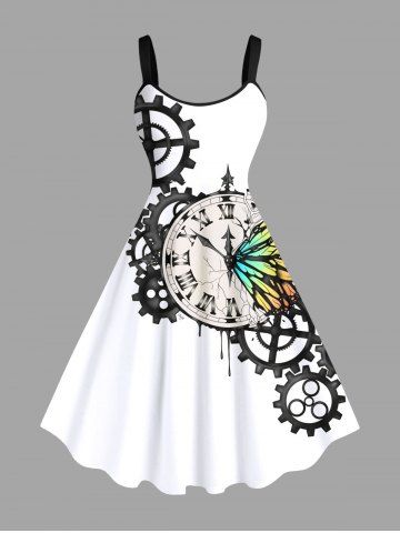 Plus Size Colorful Ombre Butterfly Clock Gear Print Hawaii A Line Dress - Crystal Cream - 2x