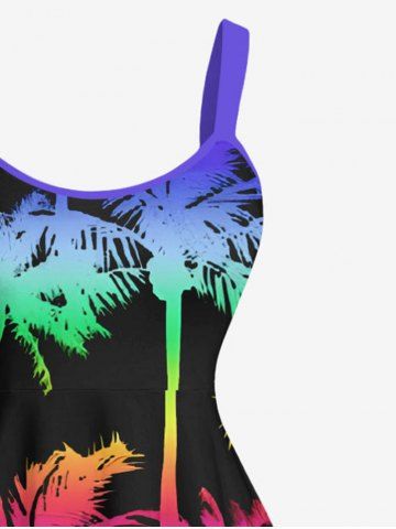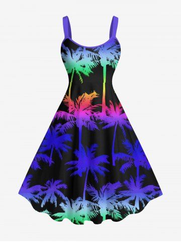 Graphic Dresses > Plus Size Colorful Ombre Coconut Tree Print Hawaii A Line Tank Dress