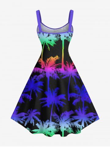 Graphic Dresses > Plus Size Colorful Ombre Coconut Tree Print Hawaii A Line Tank Dress