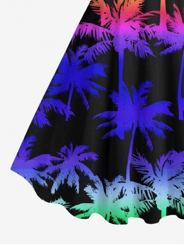 Plus Size Colorful Ombre Coconut Tree Print Hawaii A Line Tank Dress - Blue - S