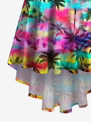 Graphic Dresses > Plus Size Colorful Ombre Coconut Tree Print Hawaii High Low Asymmetric A Line Cami Dress