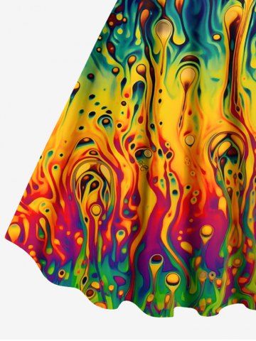 Graphic Dresses > Plus Size Colorful Ombre Flowing Liquid Print Hawaii A Line Tank Dress