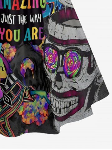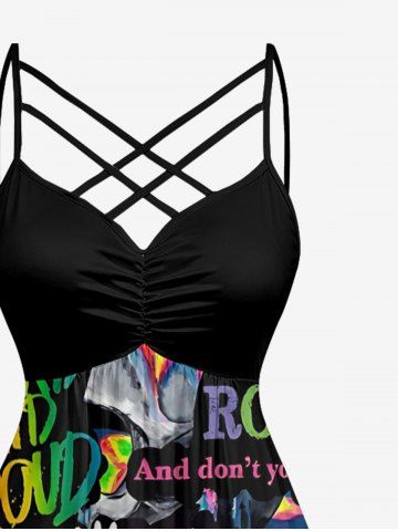 Graphic Dresses > Plus Size Colorful Ombre Letters Skull Print Ruched Crisscross A Line Cami Dress