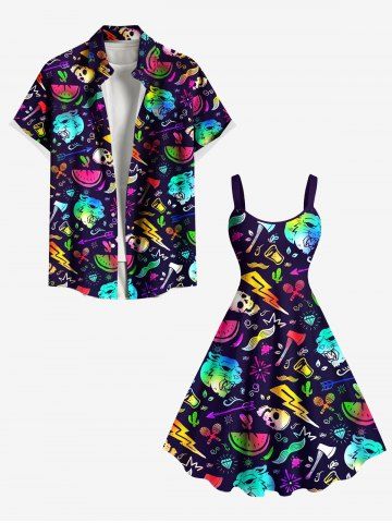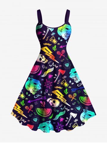 Graphic Dresses > Plus Size Colorful Ombre Monster Skull Watermelon Lightning Cactus Print Hawaii A Line Tank Dress
