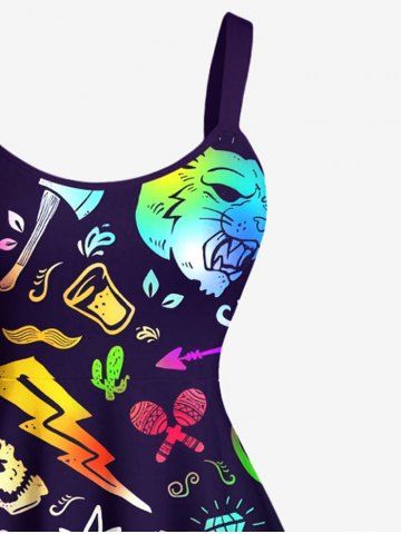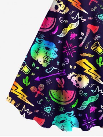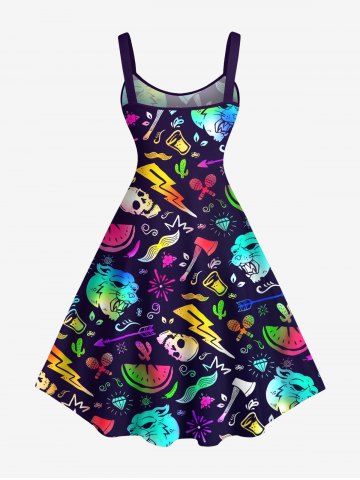 Graphic Dresses > Plus Size Colorful Ombre Monster Skull Watermelon Lightning Cactus Print Hawaii A Line Tank Dress