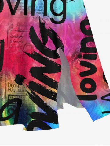 Graphic Dresses > Plus Size Colorful Ombre Newspaper Letters Heart Print Hawaii Split Pocket A Line Midi Dress