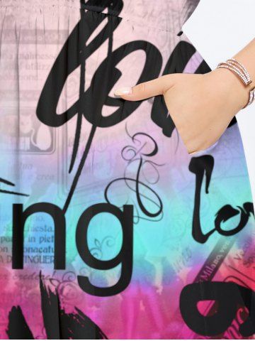 Plus Size Colorful Ombre Newspaper Letters Heart Print Hawaii Split Pocket A Line Midi Dress - Multi-a - Xs