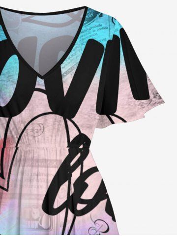 Plus Size Colorful Ombre Newspaper Letters Heart Print Hawaii Split Pocket A Line Midi Dress - Multi-a - 1x